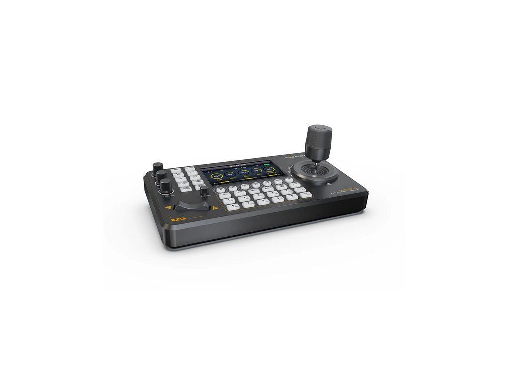 AVMatrix PKC3500 je kompaktní, ale výkonný ovladač PTZ určený pro živou produkci, vysílání, vzdělávání a bohoslužby. Jeho jasná 5palcová dotyková obrazovka zobrazuje dekódované video v reálném čase až ze 4 kamer současně, zatímco přesný 4D joystick a T-bar poskytují plynulé a intuitivní ovládání otáčení/naklánění/zoomu/zaostřování.