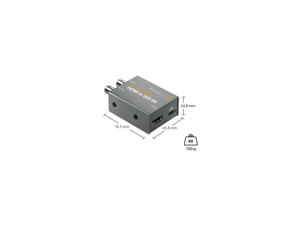 Na rozdíl od jiných malých SDI převodníků, Blackmagic Micro Converters disponují vysílací technologií nejvyšší kvality, miniaturizovanou do neuvěřitelně pevného kovového pouzdra. Každý převodník má průmyslová standardní 3G-SDI a HDMI připojení se silnými vysoce kvalitními konektory. Blackmagic Micro Converters obsahují USB připojení pro napájení, jakož i možnost změny nastavení pomocí utility Converter na počítačích Mac a Windows. Jelikož USB napájí převodník, zákazníci jej mohou napájet iz televizorů nebo přenosných počítačů. K dispozici jsou dokonce i LED diody pro stav napájení a videa. Zákazníci si také mohou pořídit Blackmagic Micro Converters se síťovým napájením včetně 4 adaptérů pro mezinárodní použití.