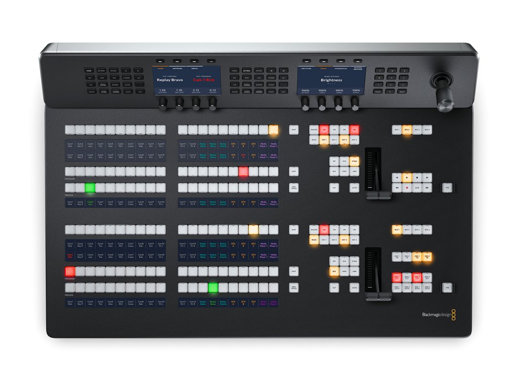 Blackmagic Design ATEM 2M/E Advanced Panel a ATEM 4M/E Advanced Panel představují další generaci stropních panelů ATEM Series! Oba modely uspokojí operátory nejvýkonnějších ATEM režijních nákladů s podporou až 4 M/E kanálů a integrací až 24 samostatných LCD displejů pro přizpůsobitelná označení tlačítek, 4 LCD displejů pro nastavení parametrů, 4 ovládacích prvků T-Bar a mnoha dalších Vlastnosti. Díky novému designu stoly podporují přímou montáž na horní stoly i samostatný provoz.
