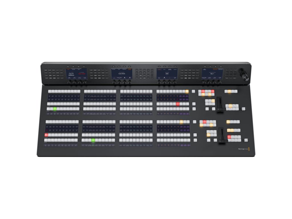 - Obsahuje samostatný LCD ovládací panel pro každý řádek M/E.