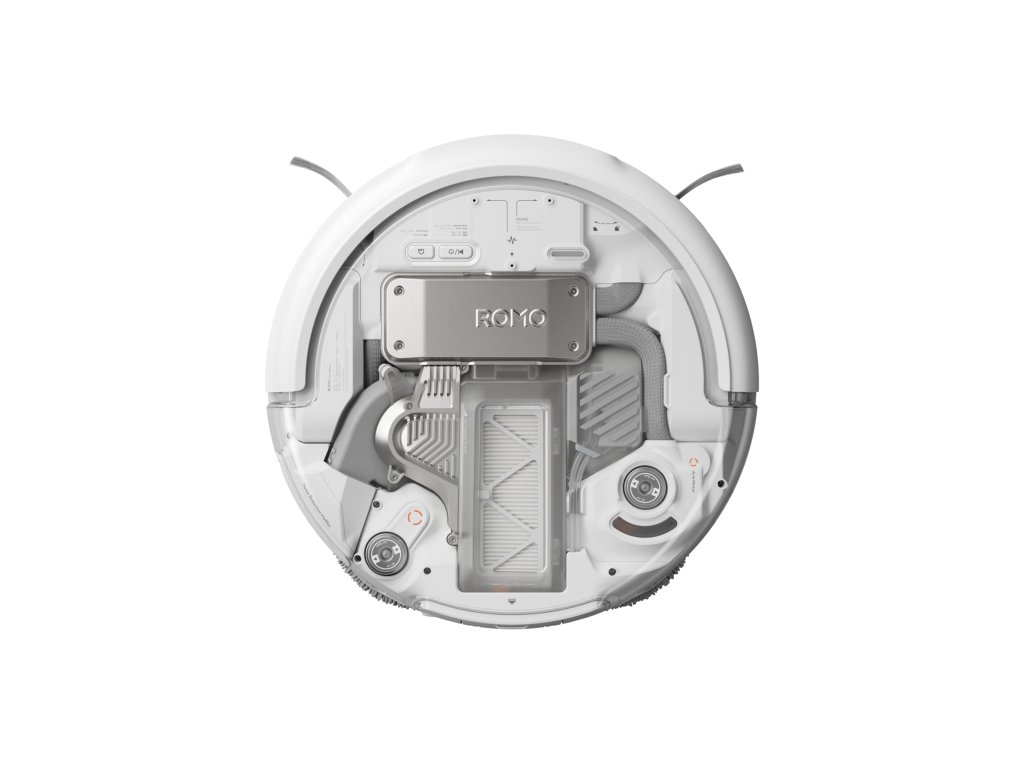 Efektivní mop 2v1: Romo dokáže vysávat a mopovat současně, čímž šetří váš čas a zanechává podlahy zářivě čisté beze šmouh.