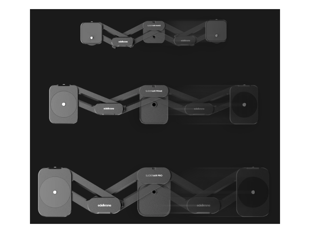 EdelKrone SliderAIR PRO je pokročilý systém řízení pohybu navržený tak, aby fungoval jako váš osobní operátor kamery a umožňoval plynulé, dynamické a opakovatelné pohyby kamery bez potřeby tradičních kolejnic. Díky revolučnímu bezkolejnicovému 4-ramennému mechanismu poskytuje čistý a nerušený pohyb a zároveň zůstává kompaktní a přenosný.