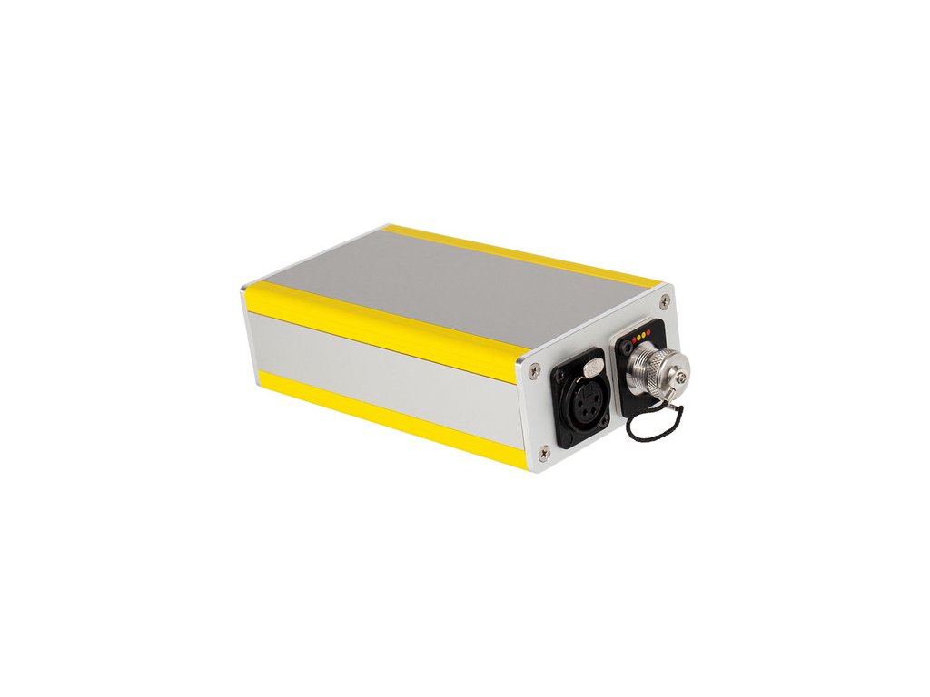 Kromě toho, optický konektor na PTZ Monk slouží ke dvojímu účelu. Kromě přenosu video signálů poskytuje také 24 V stejnosměrný proud pro samotný PTZ Monk. PTZ Monk pak konvertuje toto napětí a vydává jej jako 12 V DC přes svůj 4-pinový XLR výstup. Tento výstupní výkon lze použít pro přenos energie přes optické připojení do připojené kamery, čímž se zjednoduší nastavení napájení.