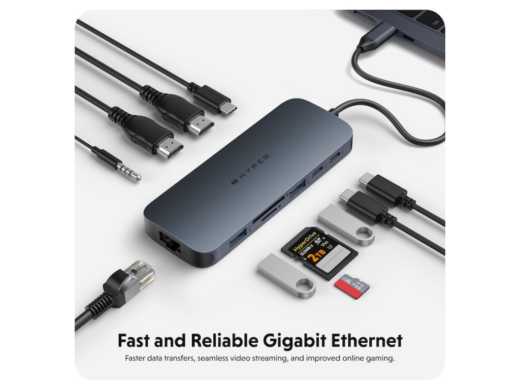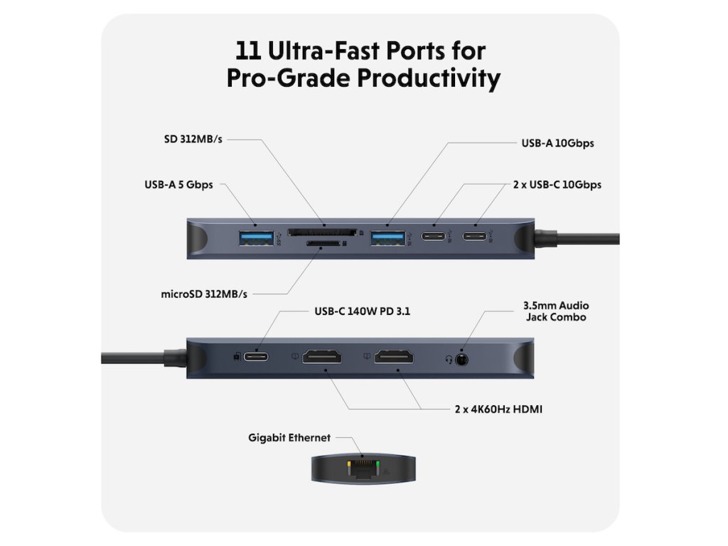 Hyper® EcoSmart™ Gen.2 Dual HDMI USB-C 11-in-1 Hub 140W PD 3.1 Pass-thru
