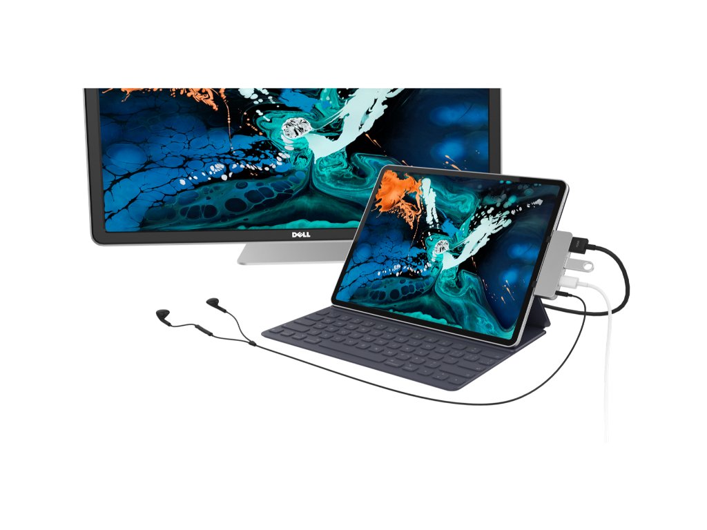Hub HyperDrive 4 v 1na iPadu Pro dokonale doladí nedostatek portů, Které obvykle pro práci nebo zábavu na tabletu potřebuje každý. S minimálním úsilím přenesete data, čistý obraz a obohatíte iPad novými funkcemi.Hub na iPadu dobře drží díky přesnému tvarování ašetří USB-C port ochrannými lištami a velmi nízkou hmotností. I díky designu, který odpovídá Apple zařízením, můžete hub na iPadu klidně nechat natrvalo.