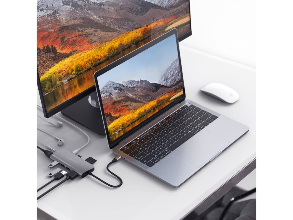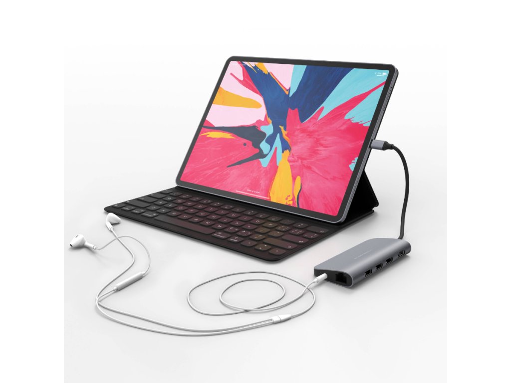 Hub HyperDrive Power dokonaledolaďuje nedostatek portů u nových iPadů a MacBooků. Nejen že vám umožní připojit rozmanité konektory, ale takéMicroSD a SD karty s přenosem 104 MB/s. Díky dostatečně dlouhému kabelu nepřevažuje při práci iPad nebo tablet postavený ve stojanu.Ke 3 vysokorychlostním portům pak připojíteUSB-A zařízení a přenesete data rychlostí 5 Gb/s. Na místech bez přístupu k Wi-Fi oceníteGigabitový Ethernet.
