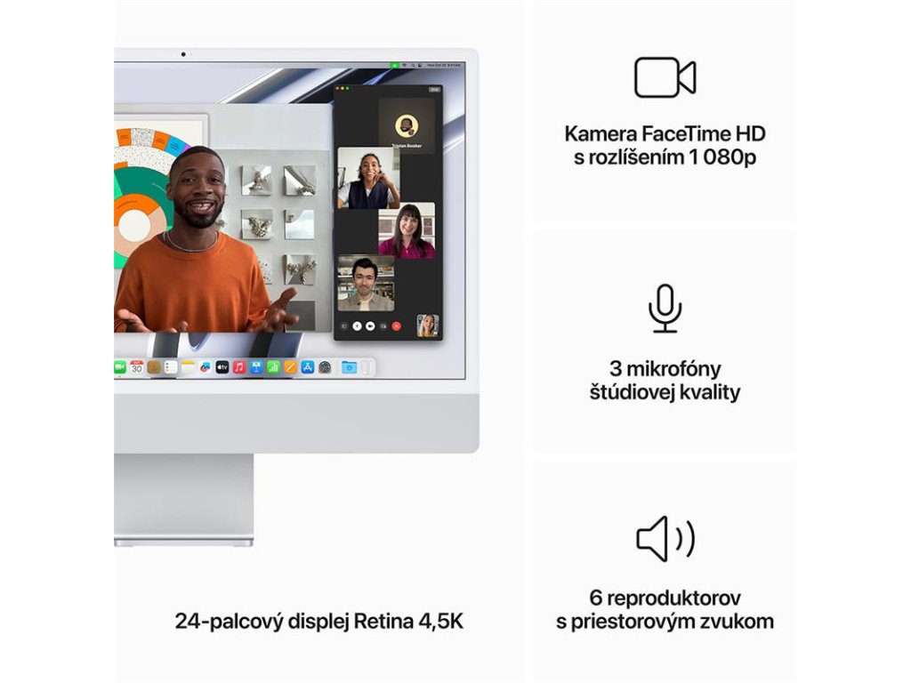 DISPLEJ KTERÝ TĚ POHLTÍ – 24palcový displej Retina 4,5K má jas 500 nýtů a podporuje 1 miliardu barev, takže vše od streamování filmů až po úpravu fotek je ostré, zářivé a barevné.