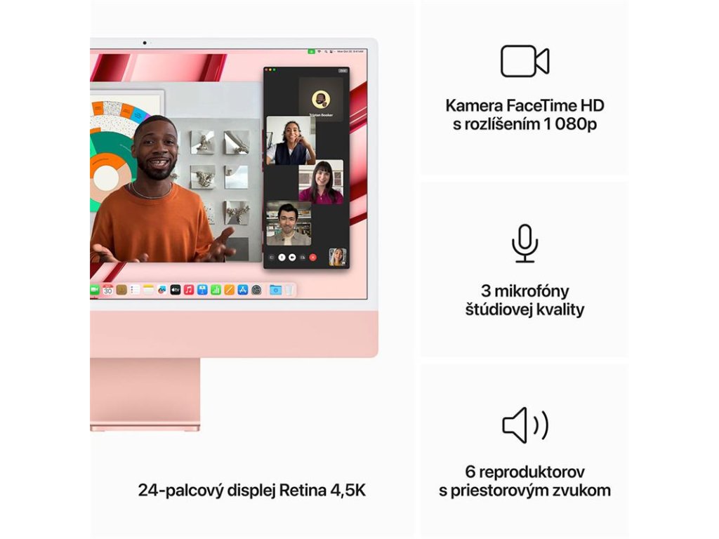 DISPLEJ KTERÝ TĚ POHLTÍ – 24palcový displej Retina 4,5K má jas 500 nýtů a podporuje 1 miliardu barev, takže vše od streamování filmů až po úpravu fotek je ostré, zářivé a barevné.