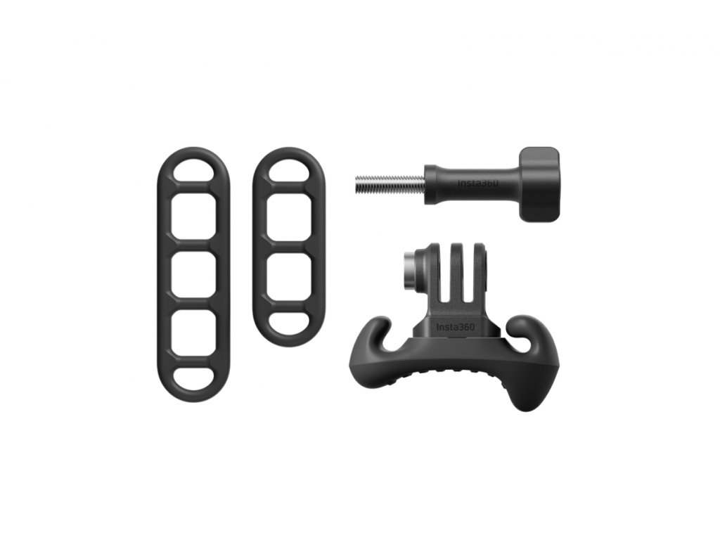 Držák obsahuje základnu, dva elastické popruhy a palcový (thumb) šroub pro zajištění. Je navržen pro kameru GO Ultra – jde tedy o originální příslušenství, které přesně sedí a funguje spolehlivě.