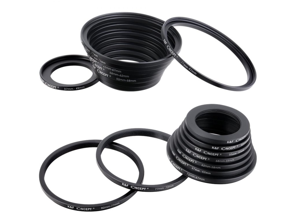 K&F Concept K&F 18-dílná sada adaptéru filtračních kroužků, sada kovových nášlapných...
