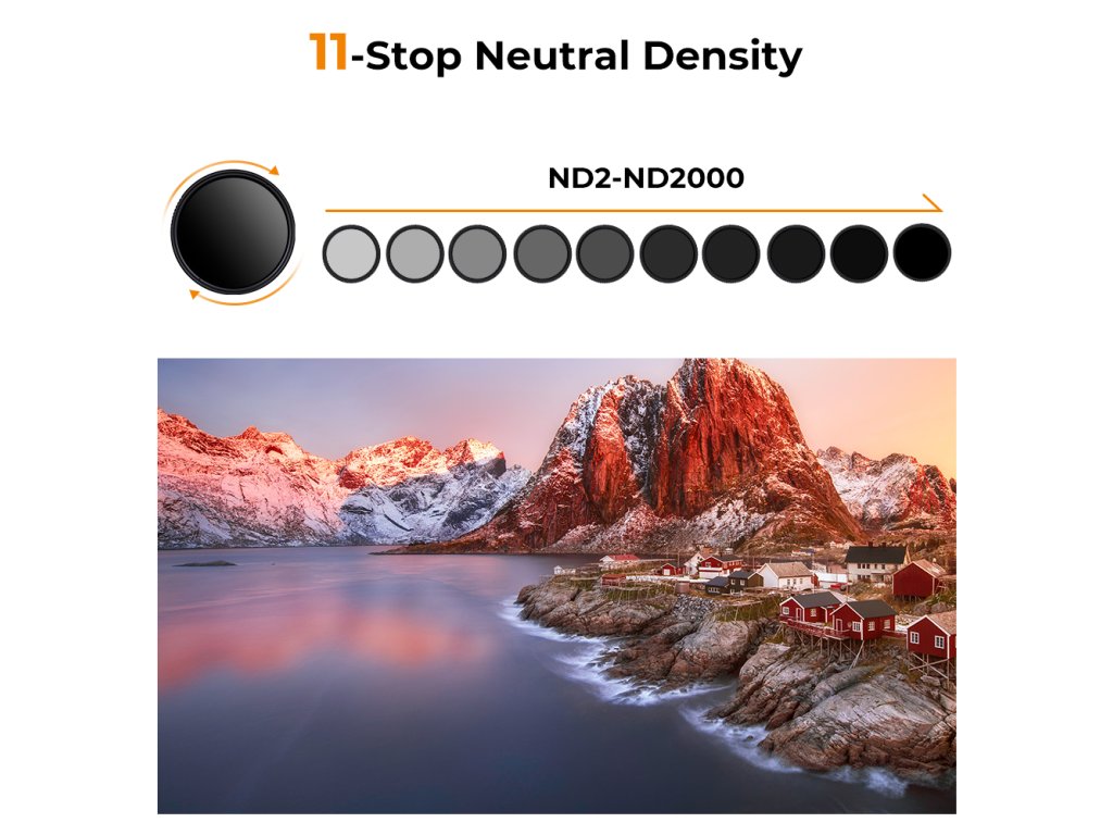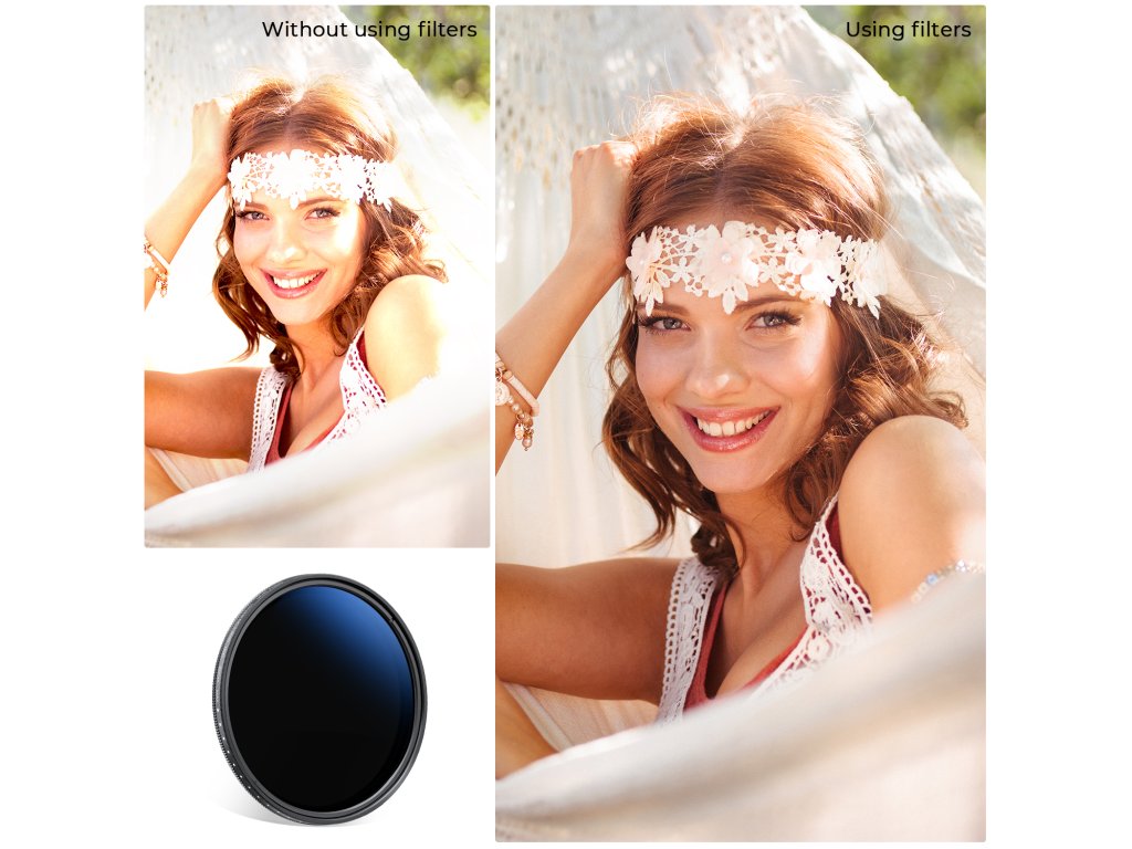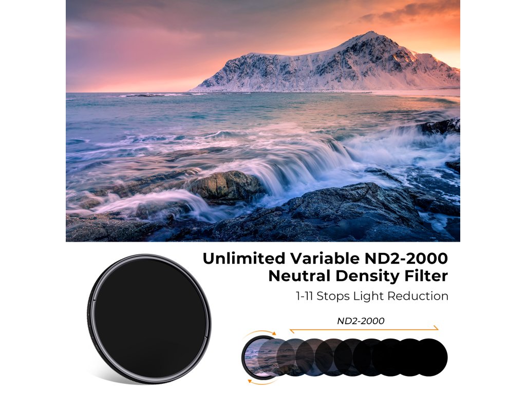 "【Funkce filtru ND2-ND2000】 Proměnná nd2000 slouží ke snížení množství světla procházejícího přes objektiv nebo k prodloužení času snímání při použití velké clony pro snímání na místech se silným světlem.