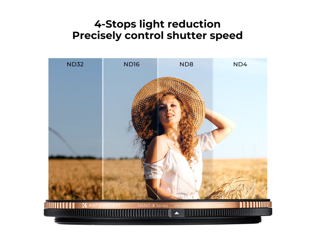 2. Neutrální filtr ND4-ND32 může dosáhnout 4-úrovňové nastavitelné snížení světla. Intenzitu neutrálního filtru lze kdykoli upravit podle potřeby přizpůsobit se různým světelným prostředím.