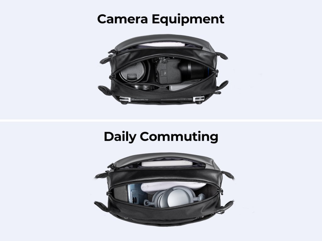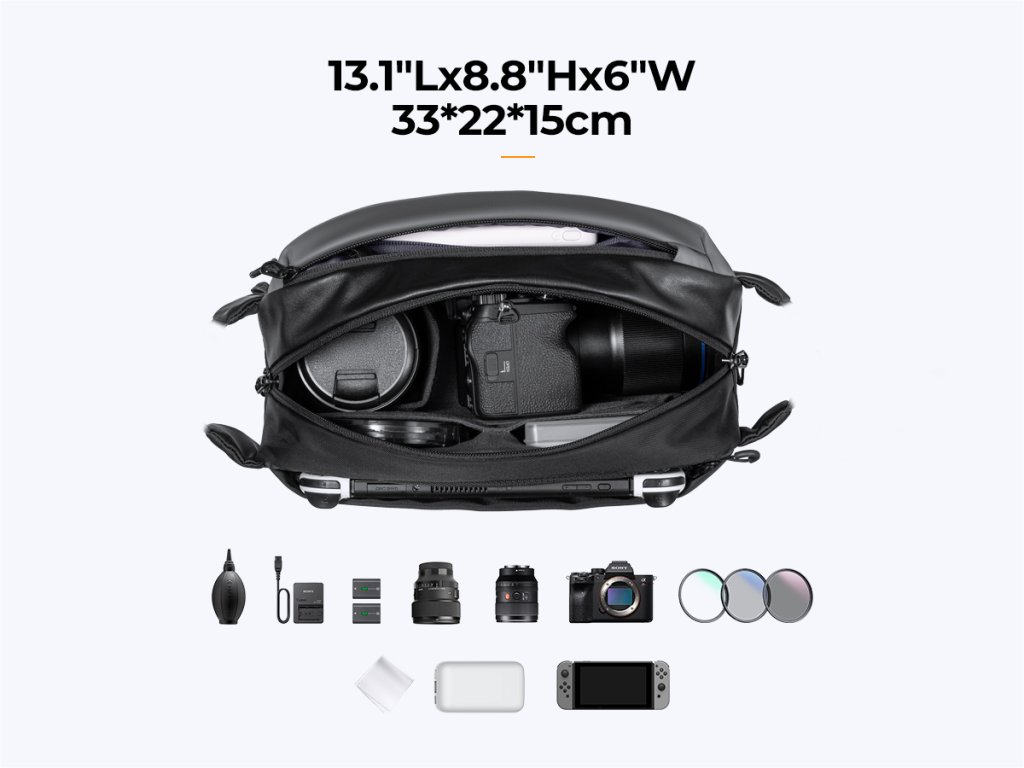 - * 【Dobře oranizovaná přihrádka】 Taška K&F Concept Alpha Camera Sling Bag má až 3 vrstvy přihrádek, do kterých můžete umístit fotoaparáty, příslušenství a osobní věci odděleně. Čistý, dobře organizovaný a snadný přístup ke každé položce.