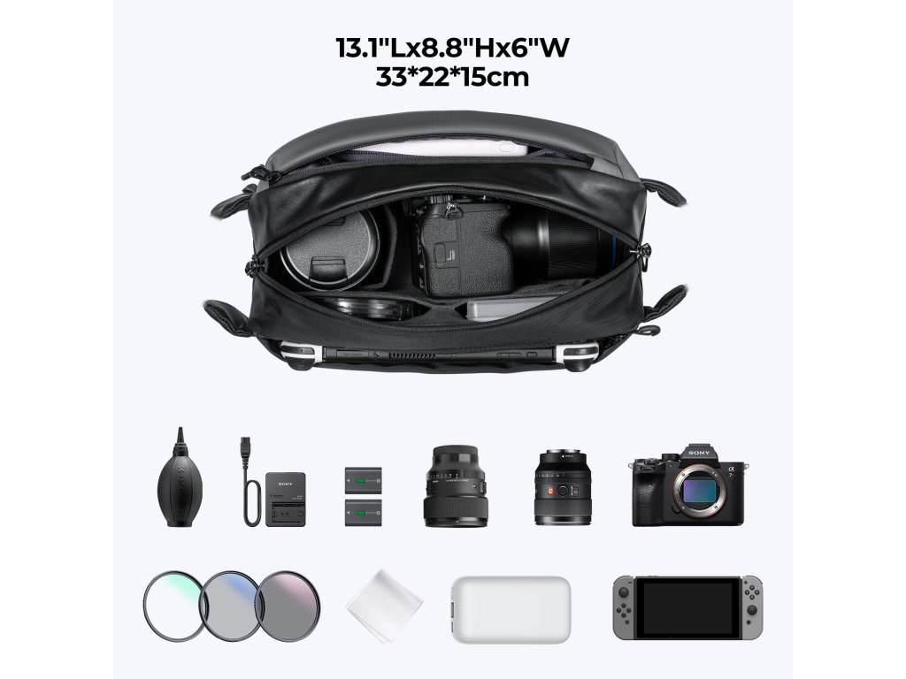 - * 【Více způsoby přenášení tašky】 S velikostí 33*22*15cm / 13,1"*8,8"*6" K&F Concept Alpha Camera Sling Bag má kapacitu 10 l a snadno pojme jeden fotoaparát a dva objektivy. Díky své všestranné funkci se tato taška na fotoaparát lze použít jako taška přes rameno, crossbody taška, bederní taška, náprsní taška nebo kabelka.