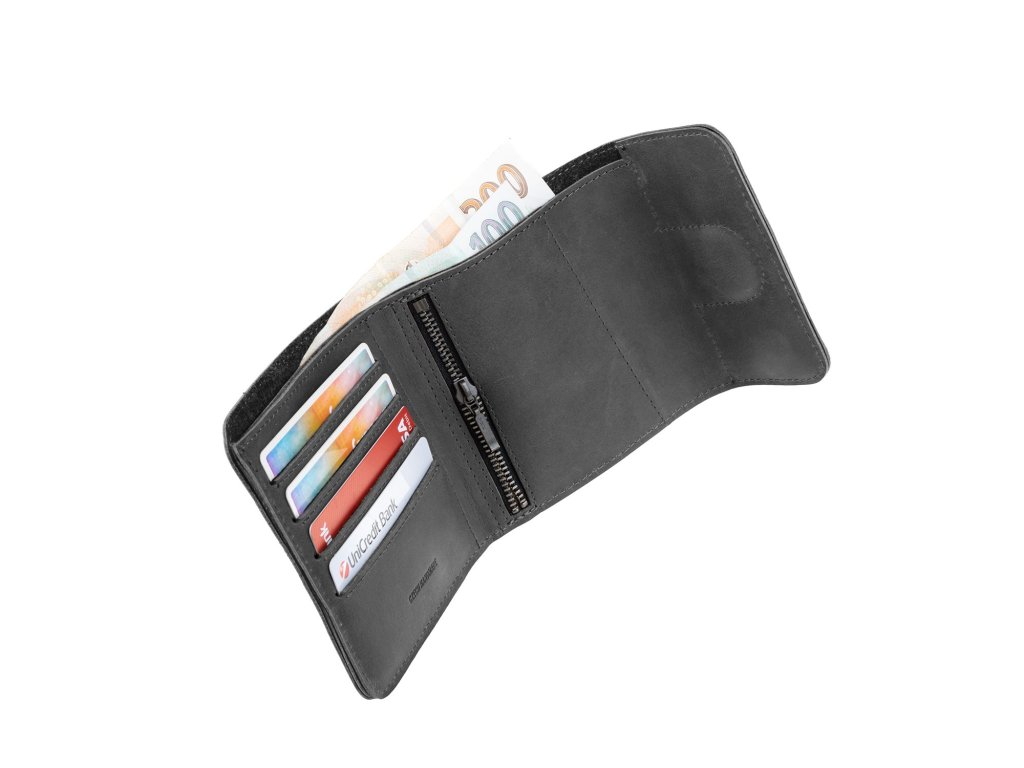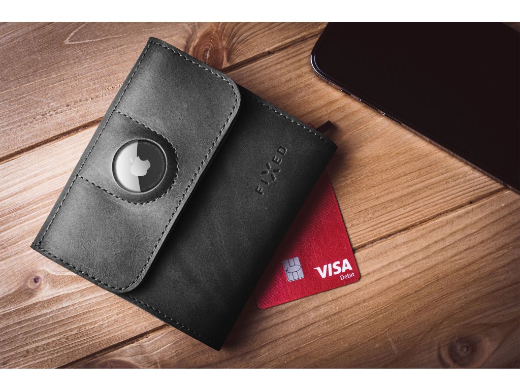 Kožená peněženka FIXED Classic Wallet for AirTag z pravé hovězí kůže, (černá)