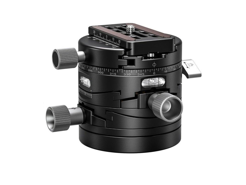 - Panoramatická základna: Integrovaná panoramatická základna s 360° rotací a přesnou stupnicí pro snadné snímání panoramatických fotografií.