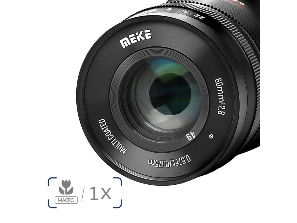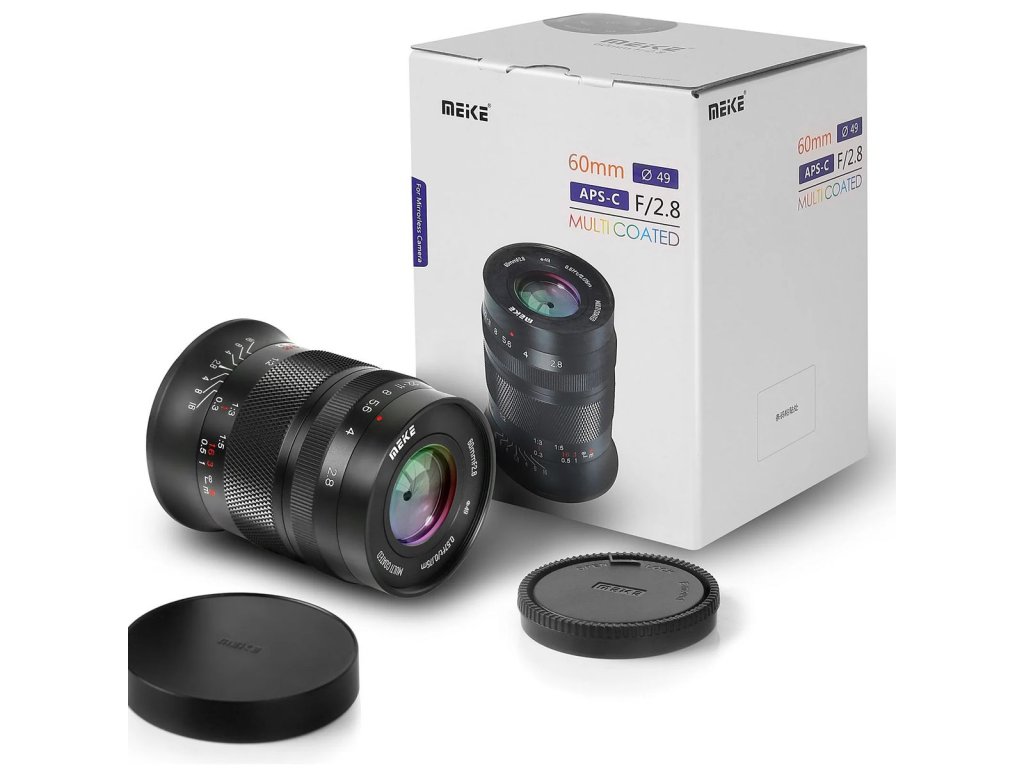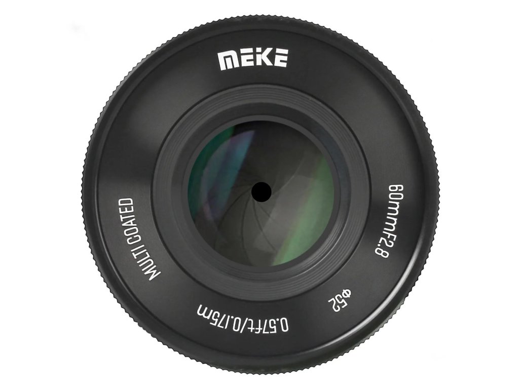 Meike 60 mm f/2,8 Macro je objektiv s manuálním zaostřováním pro fotoaparáty vybavené snímači APS-C/S35 a je k dispozici s objímkami E, X, Z, EF, RF a MFT. Objektiv nabízí minimální zaostřovací vzdálenost 0,175 m, poměr zvětšení 1:1, strukturu čočky složenou z 11 prvků v 8 skupinách a 9 lamelovou clonu. K dispozici od 3/2023.