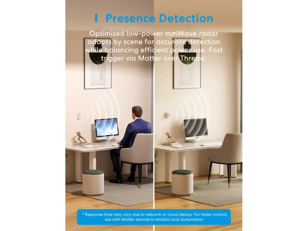 - mmWave radar zachytí i mikropohyby – přesná detekce přítomnosti.