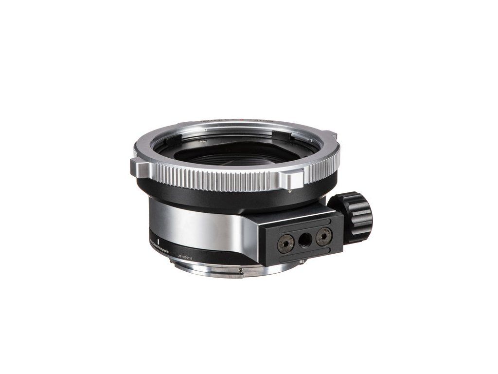 Adaptér je vyroben z lehké hliníkové slitiny s mosaznými montážními kroužky a zajišťuje odolnost a zároveň minimalizuje namáhání držáku fotoaparátu. Jeho vnitřní matný černý povrch zabraňuje nežádoucím odrazům, čímž zachovává vynikající optickou čistotu a věrnost barev. Odnímatelný a otočný stativový objímka s odnímatelnou patkou stativu typu Arca podporuje těžší objektivy během snímání.