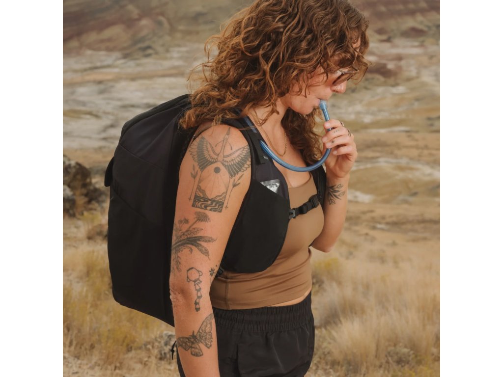 Tkanina LightWeave™ Ripstop s dvojitou vrstvou DWR zátěru bez PFAS poskytuje vodoodpudivou ochranu. Magnetická chlopeň odvádí vodu od předního zipu, čímž snižuje pronikání vody během lijáků.