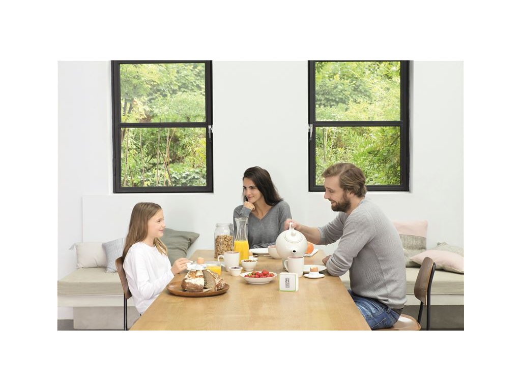 Programovatelný modulační termostat s inteligentním ovládáním. Displej E-Paper. Průsvitná kostka z plexiskla navržená Starckem. Lze přizpůsobit 1 ze 4 dostupných barev. Teplotu lze nastavit přímo na termostatu. Určeno pouze pro vnitřní použití. - Velikost výrobku