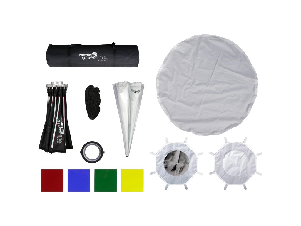 Inovace nikdy nekončí. Po úspěchu celosvětově populárního softboxu Ráje s hrdostí společnost Phottix představuje novou řadu multifunkčních EZ-up modifikátorů G-Capsule. Inovativní G-Capsule kombinuje softbox s průhledným deštníkem, což umožňuje nespočet použití. Můžete jej použít jako tradiční softbox s přiloženou mřížkou, jako kosmetickou misku nebo jako lucerna s měkkým světlem a všesměrovým osvětlením. Systém také obsahuje sadu 4-barevných magnetických držáků na gel. G-Capsule je k dispozici v 8 různých velikostech a stylech a je vybaven bajonetem Bowens, přičemž bajonety Elinchrom a Profoto jsou k dispozici samostatně. Vlastnosti: • První panoramatický softbox typu „vše v jednom“ na světě • 8 velikostí a stylů • Průhledný deštník v kombinaci se softboxem a mřížkou umožňuje mnoho použití • Integrovaný magnetický držák gelového filtru se 4-barevným gelovým filtrem • Tlačítko odemknutí „ONE Push. • Používá tepelně odolný materiál Phottix SL Tech • 4/16 žebra ze skleněných vláken s bílým vnitřkem • Vyměnitelné kroužky rychlosti pro populární značky osvětlení • Podporuje blesky speedlite, záblesky, monoreflektory, kontinuální světla a LED diody • Cestovní taška? Série G-Capsule je první panoramatický softbox typu vše v jednom na světě s patenty, které nabízejí čtyři režimy: Softbox, mřížka, kosmetická miska a lucerna. Série G-Capsule má černý exteriér, bílý vnitřní povrch a strukturu se 4 a 16 žebry ze skleněných vláken. Žebra ze skleněných vláken jsou lehká, ale zároveň robustní a odolná a dají se snadno složit, aby se ušetřil prostor. Softbox se dodává s přenosnou taškou. Série G-Capsule se dodává v osmi velikostech a tvarech, jako jsou parabolický hluboký, obdélníkový pás a kulatý. Je vybavena oblíbeným držákem Bowens, který je kompatibilní s nejoblíbenějším příslušenstvím typu Bowens pro zábleskové blesky, blesky nebo LED světla. Vyměnitelné držáky pro Elinchrom a Profoto jsou také k dispozici a prodávají se samostatně. Co je G? „G“ je zkratka pro magnetický držák gelových filtrů, který se dodává se čtyřmi barevnými gelovými filtry. Inovativní a patentovaný držák gelových filtrů vybavený magnetickým mechanismem na obou stranách umožňuje změnu barvy gelového filtru během několika vteřin. Použijte gely k vytvoření speciální atmosféry při natáčení. Vynikající tepelně odolný textilní materiál Bílý interiér softboxu řady G-Capsule je vyroben z vynikajícího tepelně odolného textilního materiálu, který odolá teplotám až do 120 °C, zatímco gelové filtry odolávají teplotám až do 130 °C. G-Capsule je nejlepší volbou pro použití s různými vysoce výkonnými LED světly, která v dnešní době získávají na popularitě. Chcete 180stupňové panoramatické světlo? Jedinečný kulatý tvar režimu Lantern poskytuje krásné, rovnoměrné světlo se širokým rozsahem panoramatického efektu. Je ideální pro fotografování, natáčení videa/kinematografii, živé vysílání a osvětlení akcí. Tento softbox je perfektním společníkem pro moderní hybrid. Jak používat režim Lantern? Deštník a softbox, které lze snadno kombinovat pomocí suchého zipu na okrajích obou, můžete je také použít samostatně k jiným účelům tvarování světla. Systém odemykacího tlačítka „ONE Push Release“ Zesílený systém odemykacích tlačítek, nejinovativnější. „ONE Push Release“ se složí a odemykací tlačítko – jednoduché skládání, nastavení bez montáže vám ušetří čas při demontáži a zlepší efektivitu snímání. Vložky Phottix Speed Ring pro sérii G-Capsule (prodávají se samostatně): 82584 Phottix Speed Ring - vnitřní kroužek pro Elinchrom (144 mm) 82585 Phottix Speed Ring - vnitřní kroužek pro Balcar (144 mm) 82584 Phot mm) Obsah balení: • Phottix G-Capsule softbox 105 cm (41″) • Phottix G-Capsule slunečníky Shoot-Through 105 cm (41″) • Držák na gelové filtry • 4-barevný gelový filtr: červený, žlutý, zelený, modrý (reflexní) • Vnitřní přepážka (shoot-through) • Vnější difuzor • Textilní mřížka • Přepravní taška 8 velikostí a stylů 1. 83720 Phottix G-Capsule hluboký softbox 40 cm (16″)* 2. 8372 cm (33“)* 3. 83721 Phottix G-capsule softbox 65 cm (26″)* 4. 83722 Phottix G-capsule softbox 85 cm (33″)* 5. 83723 Phottix G-capsule softbox 15 G-Capsule softbox 30x55 cm (12"x22") 7. 83726 Phottix G-Capsule softbox 60x90 cm (24"x35")Doplňkové parametry