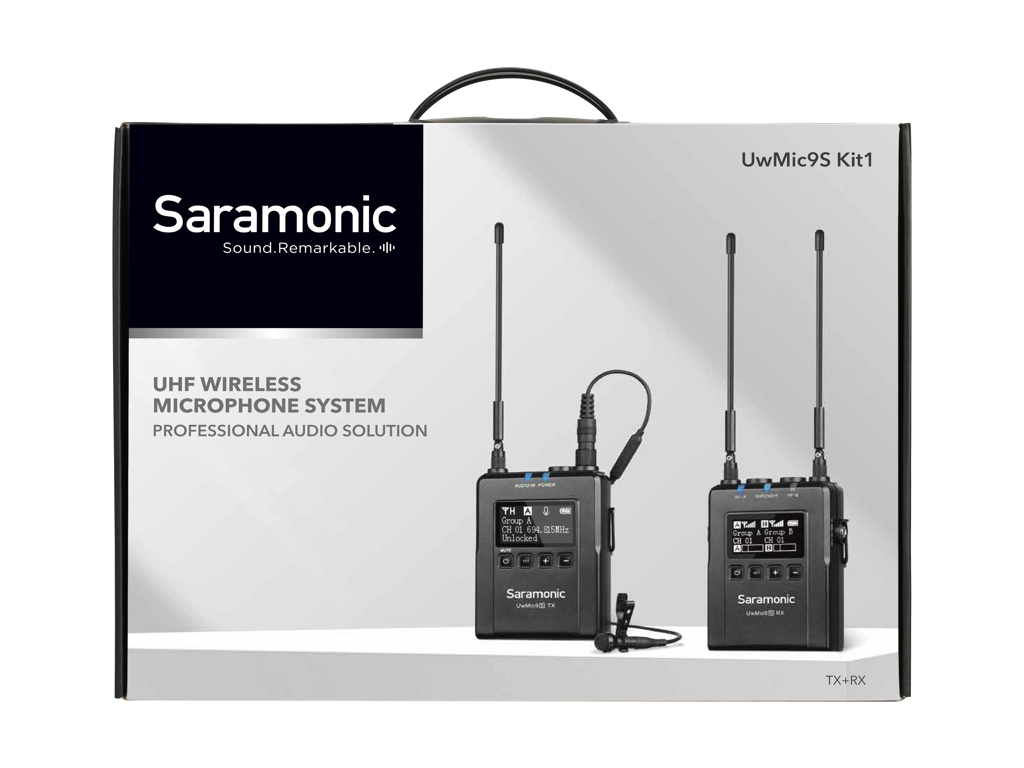 Saramonic RX9s je dvoukanálový bezdrátový UHF přijímač s možností upevnění na fotoaparát. Vyznačuje se širokým přepínatelným RF pásmem, vysoce kontrastním OLED displejem, infračerveným párováním a synchronizací mezi vysílačem a přijímačem. Dvě odnímatelné antény lze pro lepší příjem otočit o 360°. Výstup přijímače lze přepínat mezi mono a stereo režimem. Funkce LCF (Low-Cut Filter) na přijímači minimalizuje nízkofrekvenční šum.Bodypack vysílač TX9s