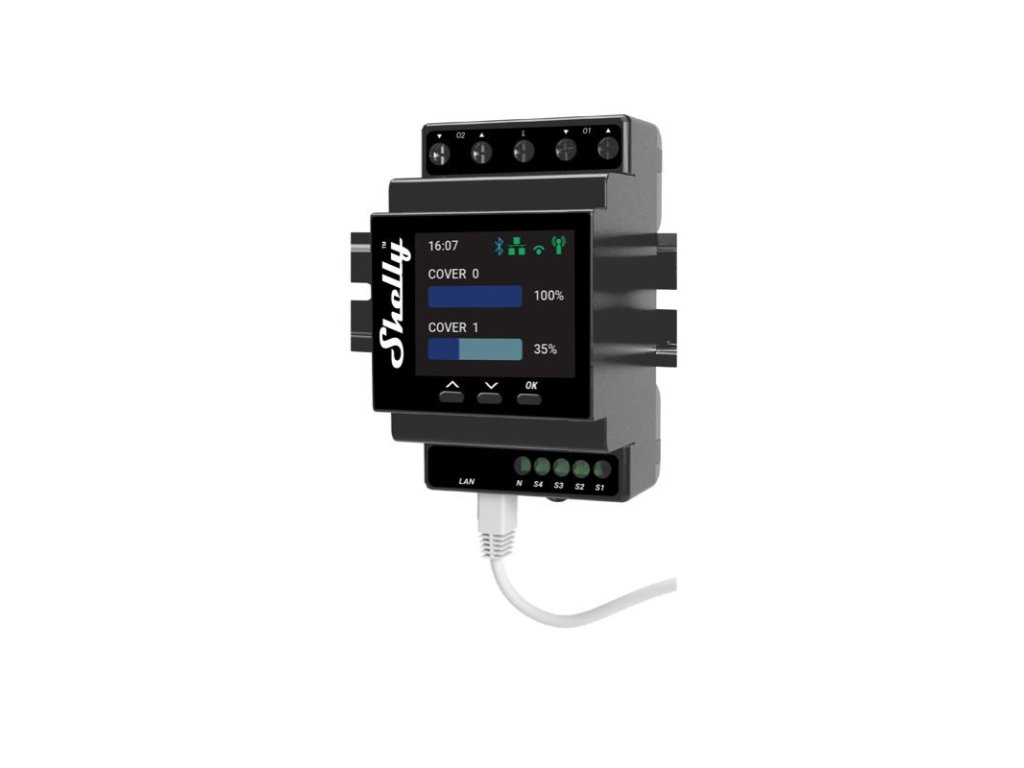 Shelly Pro Dual Cover Shutter PM - modul pro DIN lištu pro ovládání 2 motorů (LAN, WiFi, Bluetooth)