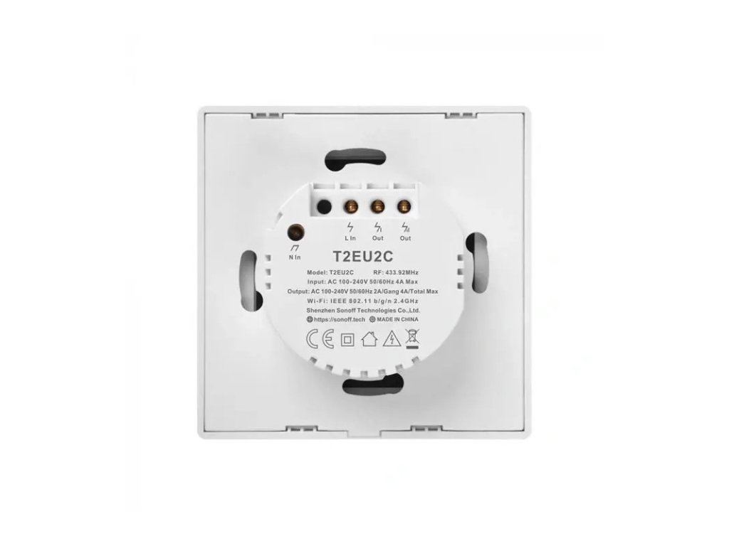 SONOFF T2EU2C-TX TX Série Wi-Fi a RF 433 MHz nástěnný vypínač, 2-kanálový (EU typ)