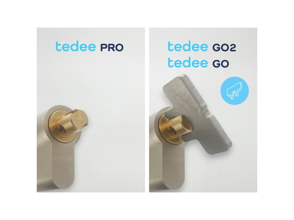 Vložka EXXO SMART spojuje výhody tradičního a chytrého odemykání. Zvenku (exteriér) lze dveře odemykat klasickým klíčem, zatímco uvnitř (interiér) umožňuje speciální osa rychlou a bezpečnou montáž chytrého zámku tedee. Model tedee PRO lze na vložku nainstalovat přímo, zatímco pro tedee GO a GO2 je třeba použít přiložený adaptér, který zajišťuje hladkou integraci s dvojitě drážkovanou hřídelí šikovných zámků.Špičková bezpečnost a odolnost