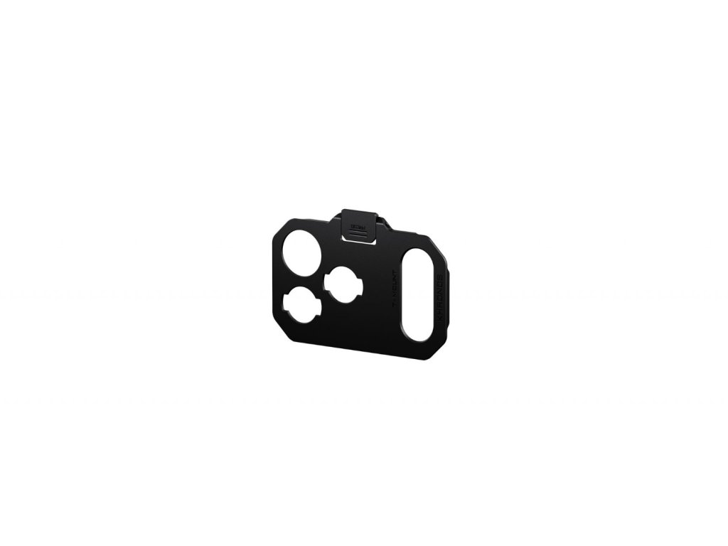 Adaptér objektivu Tilta Khronos série T v černé barvě je určen pro iPhone 17 Pro Max s pouzdry Khronos nebo Khronos Lite. Poskytuje bezpečné a snadné montážní řešení kompatibilní s objektivy pro chytré telefony Fotogear a Moment série T a je vybaven rychloupínací západkou a bezpečnostní sponou pro spolehlivé upevnění.