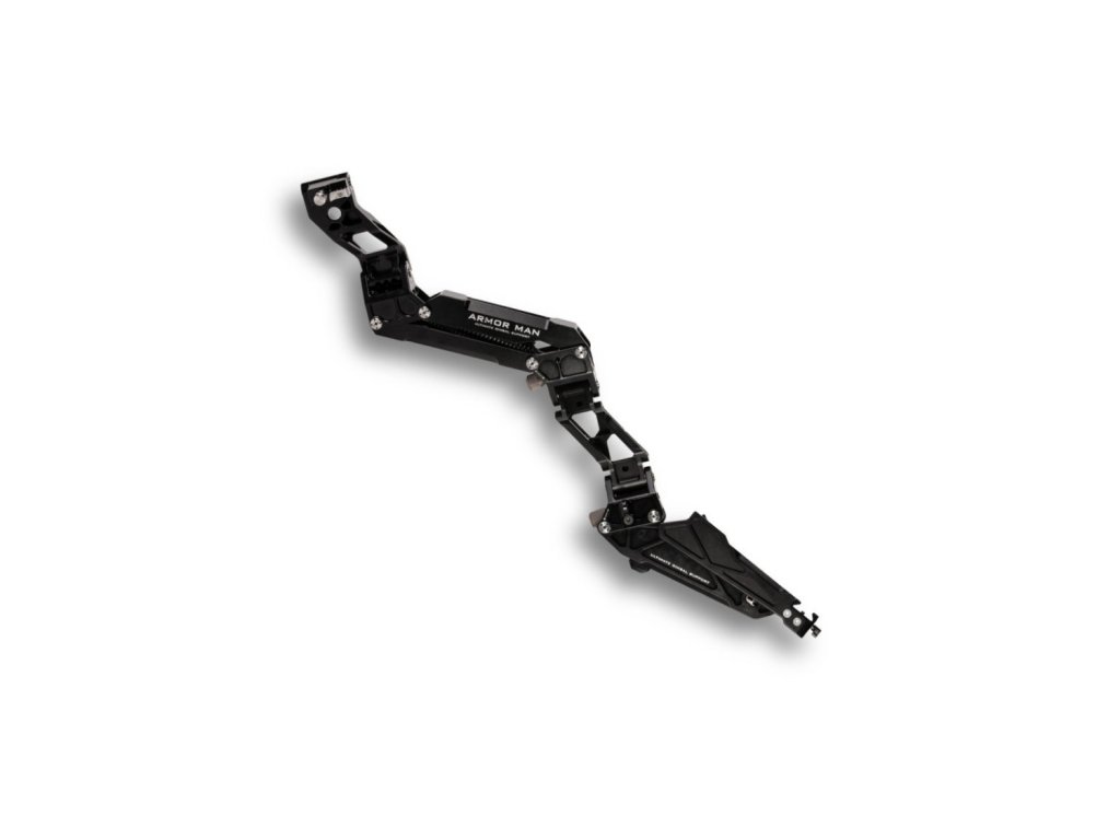 Armorman 3.0 Arm (L) – Tato stabilizovaná levá ruka absorbující nárazy pro Armor Man 3.0 se připevňuje k zadní části vesty Armor Man 3.0 v normálním provozním režimu a může být také připevněna k horní části vesty, když pracujete v konfiguraci nad hlavou. Když je rameno zapnuto, má dva nastavitelné napínací knoflíky, které vám umožňují přizpůsobit se hmotnosti vašeho kardanového/kamerového zařízení, jakož i preferovanému stylu ovládání (zda chcete, aby byla ramena vychýlena směrem od těla nebo těsně a kompaktně k tělu). ).