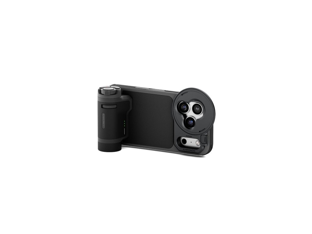 Ergonomická rukojeť s Bluetooth:Přiložená lehká rukojeť se připevňuje přímo k montážním bodům stojanu pouzdra Khronos Lite. Důležité je, že komunikuje přes...Bluetootha nechat své iPhonyPort USB-C zcela volnýk nabíjení, externí SSD disky nebo rozbočovače. Ovládejte zaostřování, přiblížení, uzávěrku a nahrávání přímo z rukojeti.