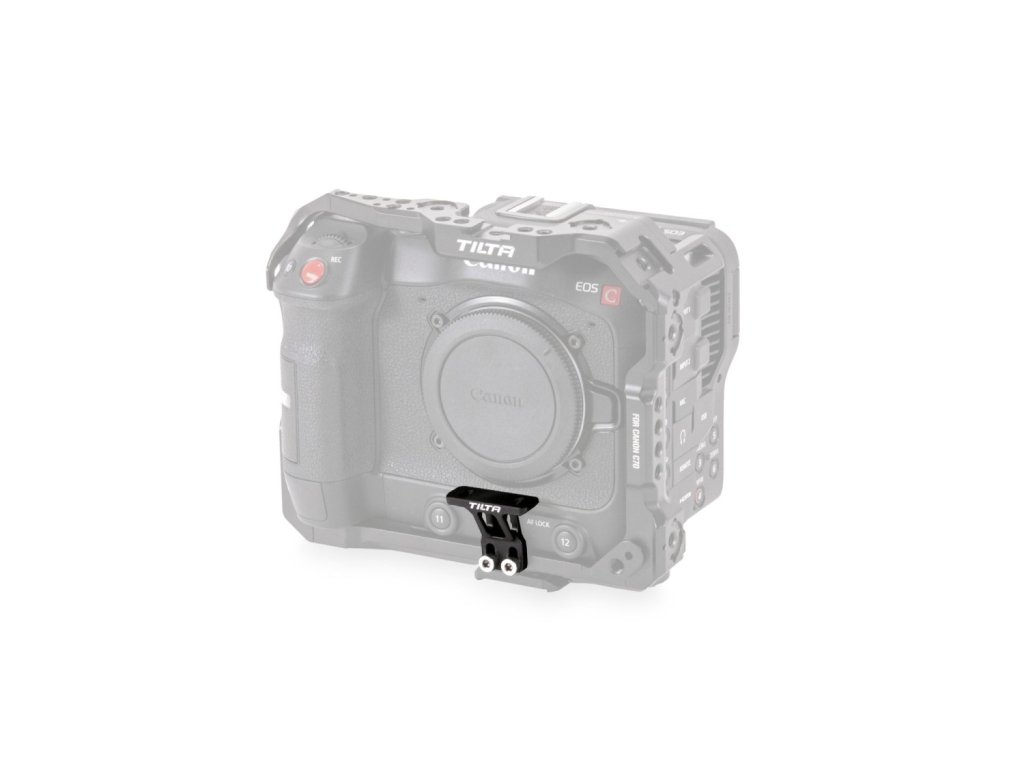 Tento držák se připevňuje k přední části klece pro fotoaparát Canon C70 a podporuje různé adaptéry pro upevnění objektivu RF na EF prostřednictvím připojení 1/4?-20 s více možnostmi polohování.
