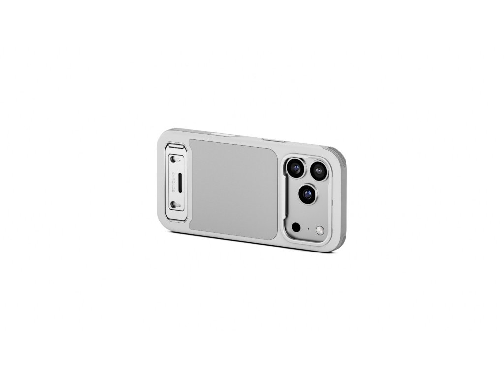 Stručný popis: Pouzdro Tilta Khronos Lite vSvětle šedáje lehké ochranné pouzdro profesionální třídy navržené na míru proiPhone 17 ProJe vybaven vestavěnýmkickstandpro sledování bez použití rukou, amagnetická zadní deskak připevnění příslušenství azesílená ochranapro kameru a rohy.