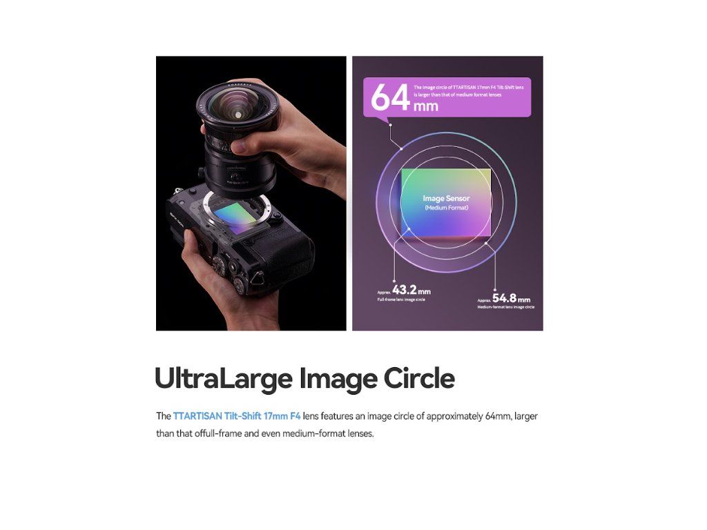 Objektiv TTArtisan Tilt Shift 17 mm f/4 L (F-TS174-L-B) je specializovaný ultraširokoúhlý objektiv navržený pro full-frame fotoaparáty s bajonetem L, který fotografům poskytuje přesné ovládání naklánění a manuální zaostřování. Díky rozsáhlému zornému úhlu 104° je tento objektiv vhodný pro fotografování architektury, interiérů, krajiny a jiných situací, kde je nezbytné široké pokrytí a přesnost perspektivy.