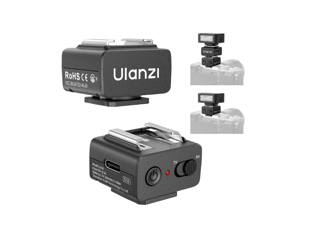 Mini blesk ULANZI LA10 je ultrakompaktní bezdrátový vysílač a přijímač s frekvencí 2,4 GHz pro externí blesky, kompatibilní s fotoaparáty Sony, Canon, Nikon, Fujifilm, Olympus a dalšími digitálními zrcadlovkami. Je lehký a přenosný, umožňuje konfigurace s více světelnými zdroji, stabilní bezdrátové ovládání do vzdálenosti 7 metrů a snadné přepínání vysílání/přijímání jedním tlačítkem, což je ideální pro cesty, portréty a fotografování událostí.