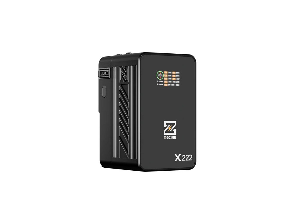 ZGCINE ZG-X222 je vysokokapacitní 222Wh V-mount baterie s obousměrným rychlým nabíjením USB-C PD3.1 140W, která dokáže dosáhnout 80% nabití již za 1,5 hodiny. Nabízí širokou škálu výstupních portů včetně tří portů D-Tap, které jsou jako první v tomto odvětví (jeden s 22V boost), a 1,4palcový inteligentní digitální displej pro monitorování napájení v reálném čase.