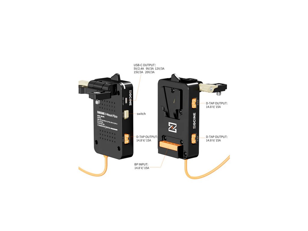 VM-VP5 je bateriová deska s bajonetem V-Mount s regulovaným výstupním napětím 19,5 V určená speciálně pro fotoaparát Sony FX6. Podporuje výměnu baterie za chodu vestavěné BPU a poskytuje různé napájecí výstupy včetně USB-C PD a D-Tap. Tato deska umožňuje prodloužené napájení a bezproblémovou výměnu baterie během profesionálního natáčení.